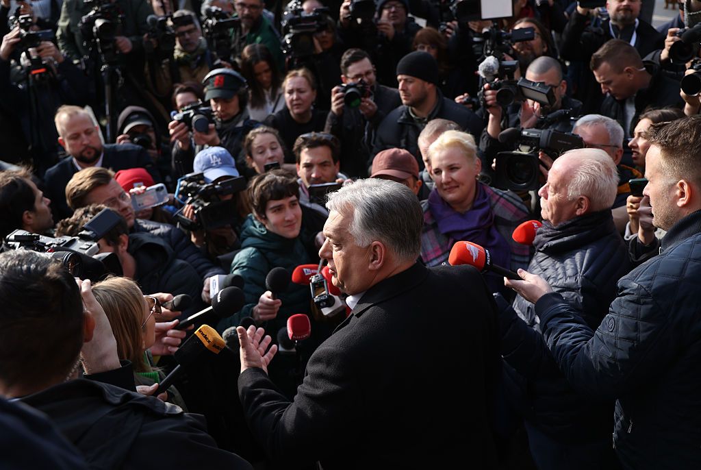 4月12日,欧尔班•维克托在布达佩斯参加议会选举投票后向媒体发表讲话。图片:GettyImages2